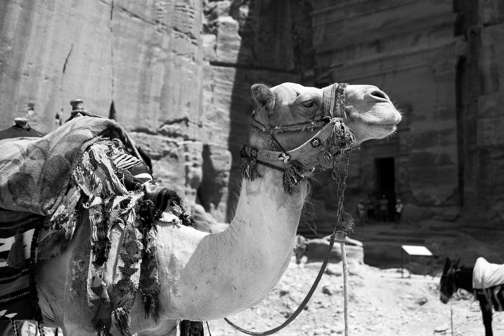 'Camel at Petra (B&W)' Wall Art Photography Print