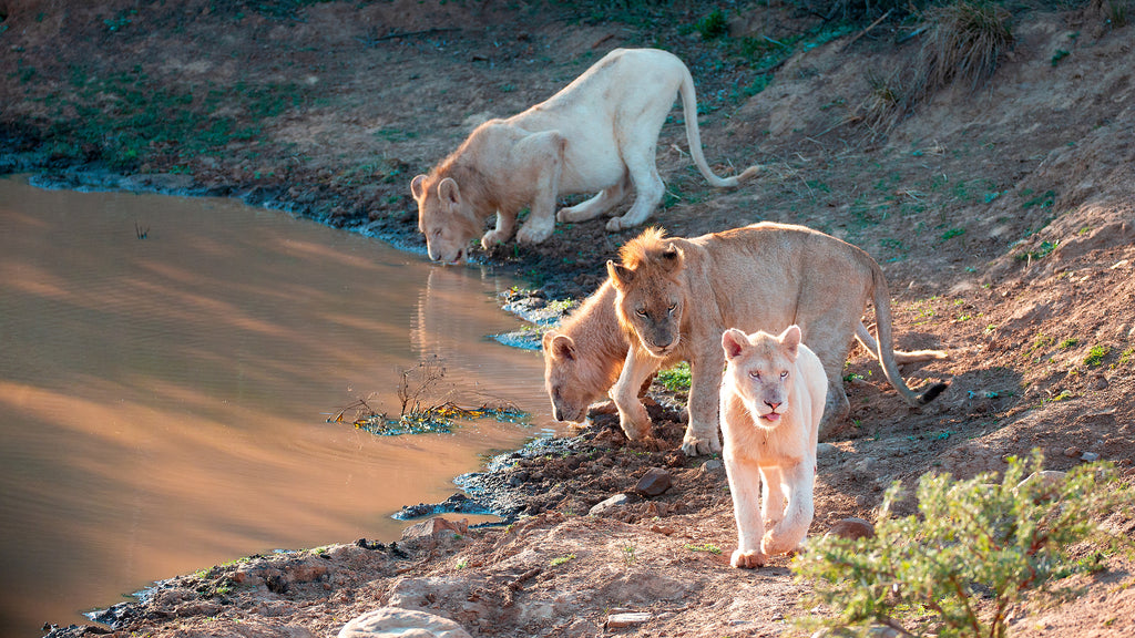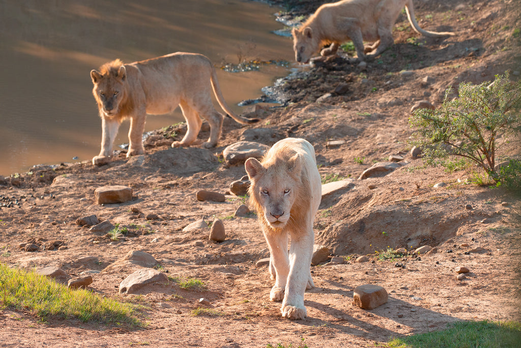 'Lions at the water hole' Wall Art Photography Print